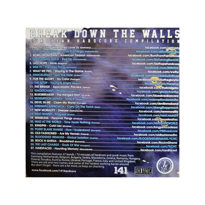 27 zespołów, 73 minuty muzyki, hardcore/ punk z Niemiec, Holandii, Belgii, Bułgarii, Serbii, Macedonii, Grecji, Rumunii, Węgier, Polski, Słowacji, Austrii, Ukrainy, Portugalii, Francji, Włoch i Wielkiej Brytanii. CD w papierowej kopercie wydane w 2014 r. przez 141 Records z Bułgarii.